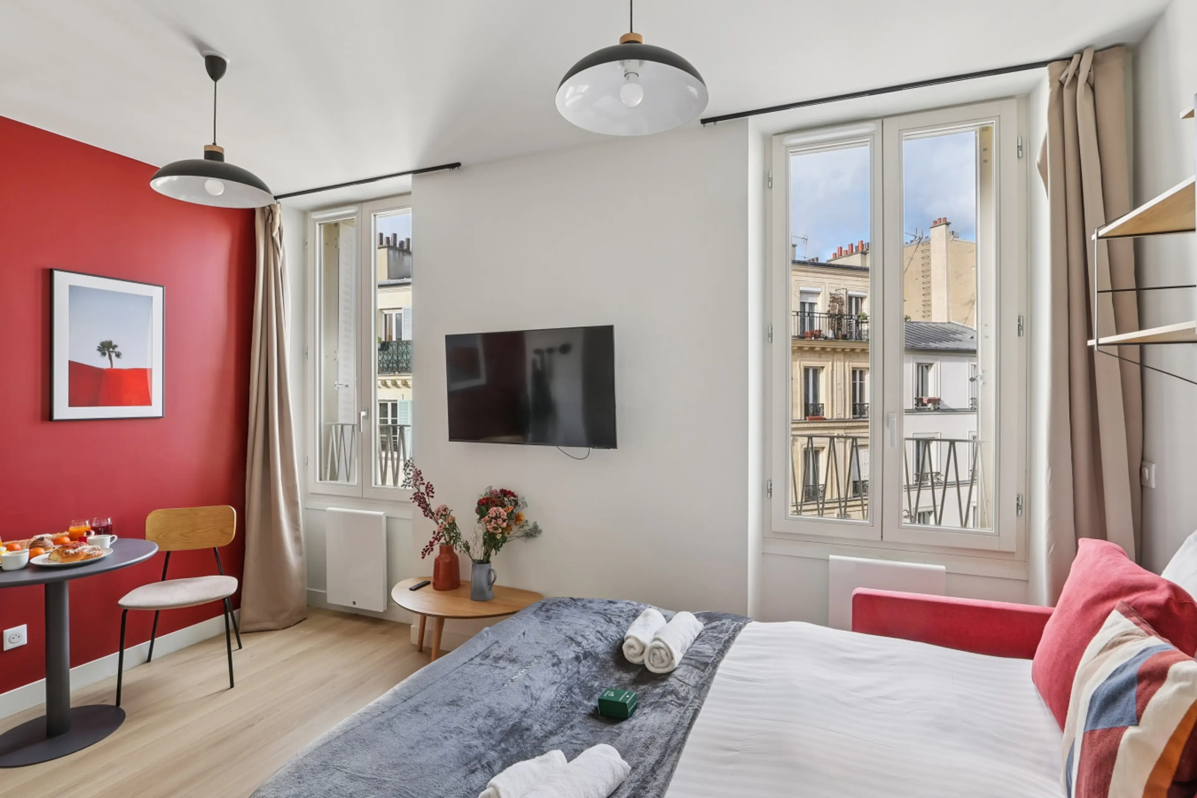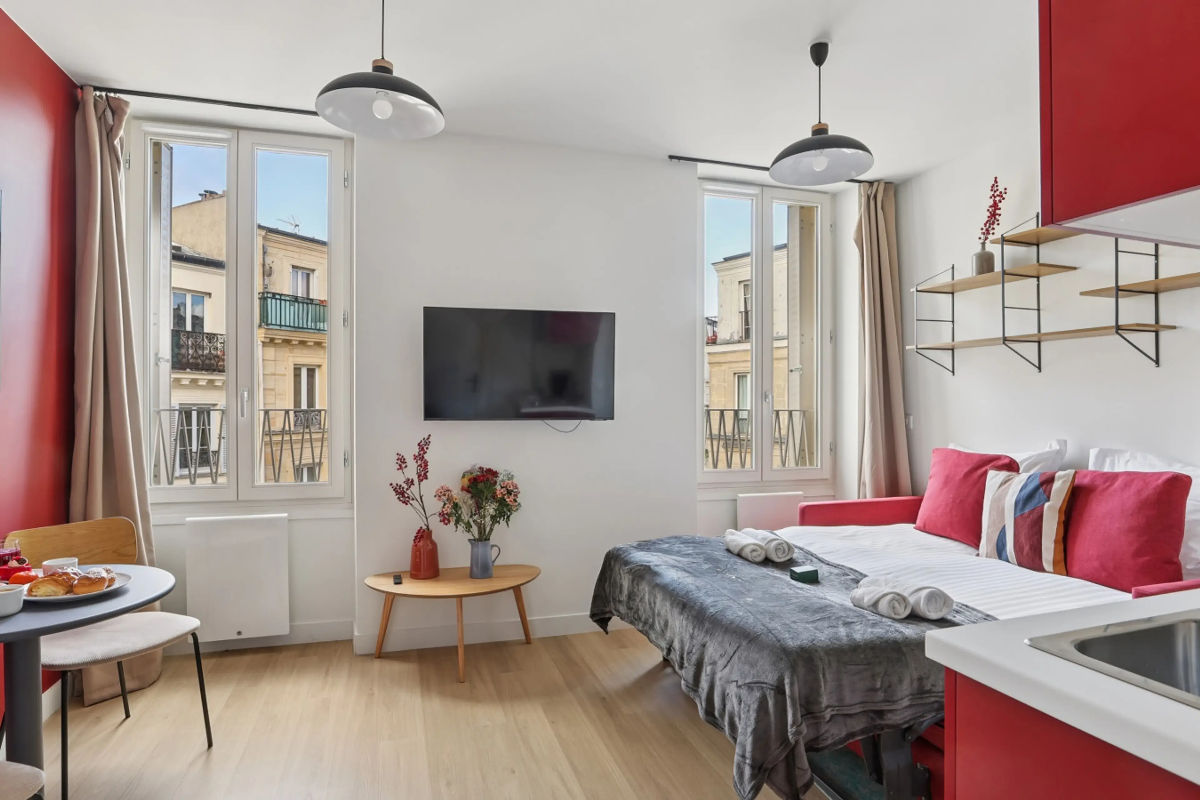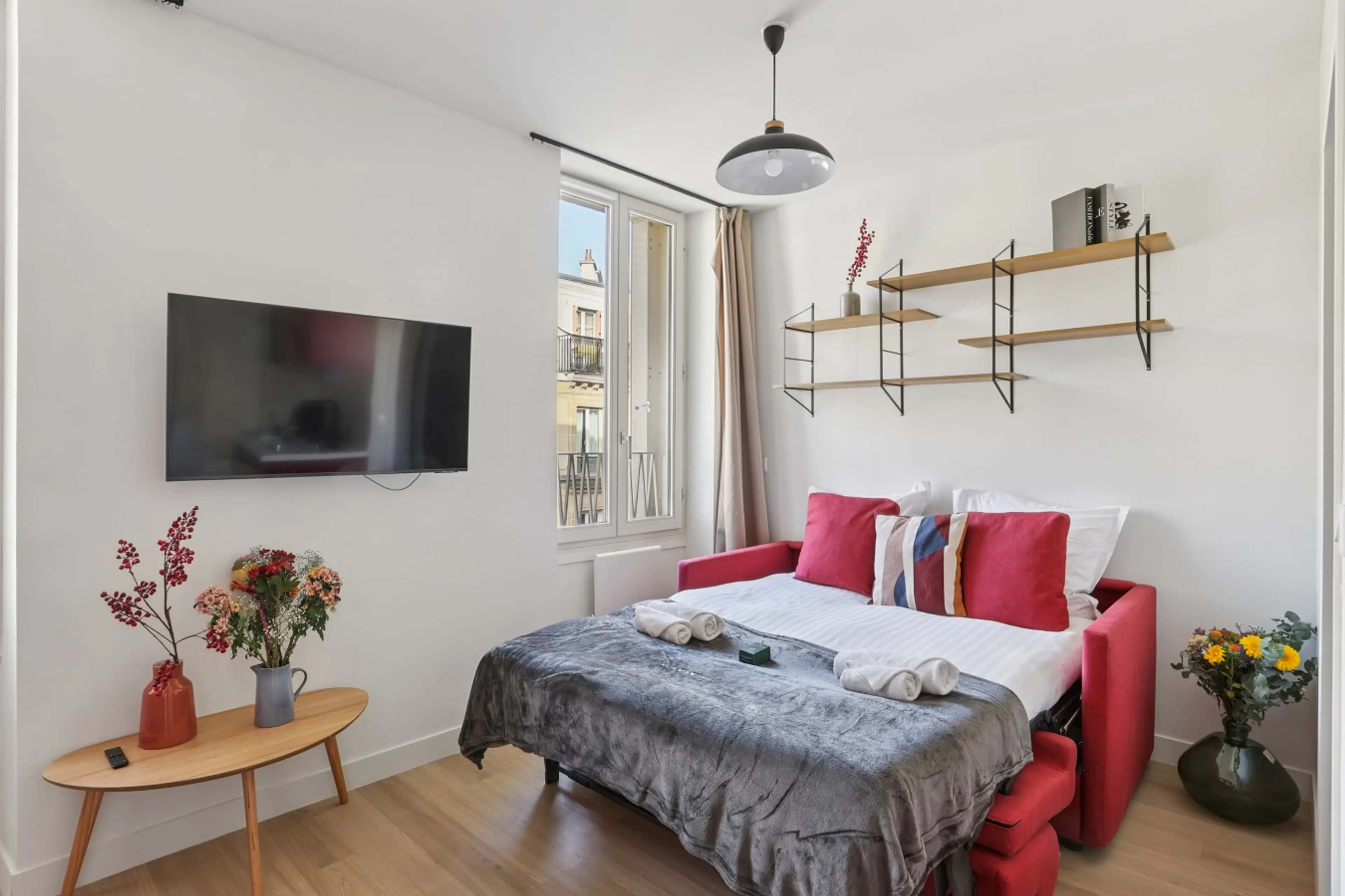 This 20 m² studio (215 ft²), located in the 17th arrondissement of Paris, offers a functional and pleasant living space, ideal for two guests. It features a comfortable sofa bed in the main living area, a private bathroom, and a fully equipped kitchen (stovetop, refrigerator, microwave, dishes, uten...