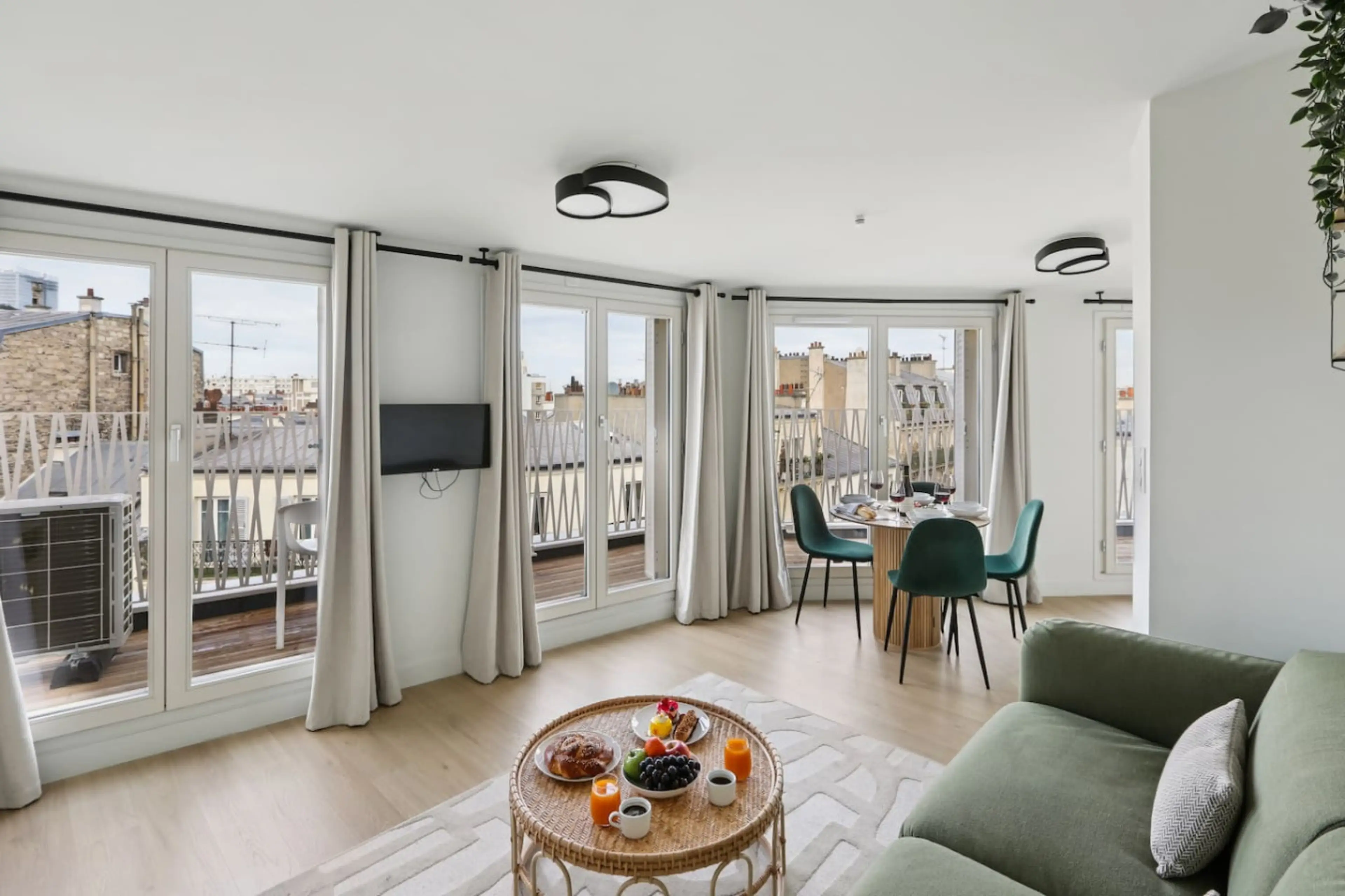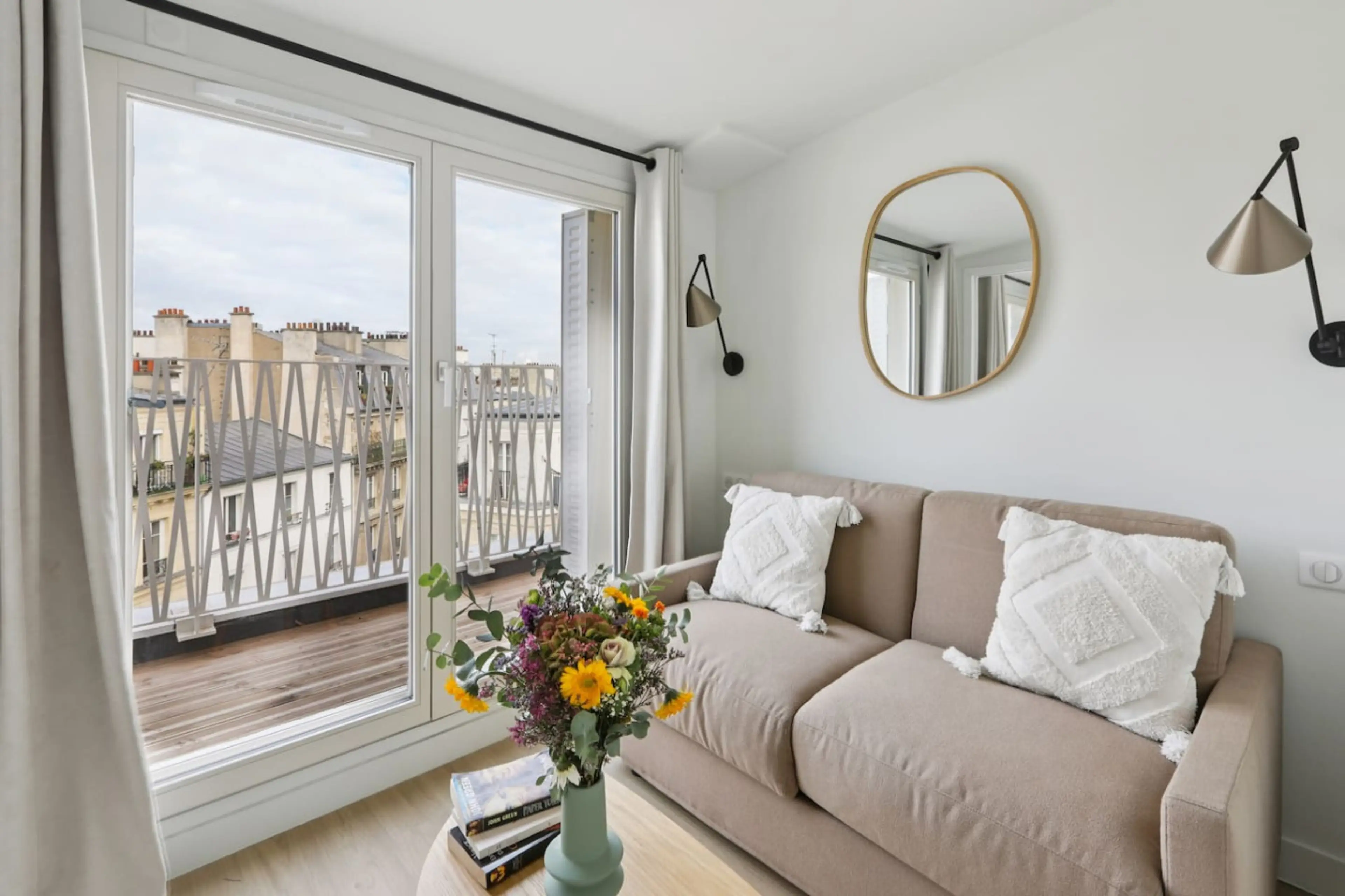 Discover Paris from this beautiful 50m² (538 sq ft) family apartment with a private terrace, ideally located in the heart of the 17th arrondissement, close to Montmartre & Batignolles district. Spacious and bright, it accommodates 6 guests: one bedroom with a double bed, a second bedroom with a sofa...